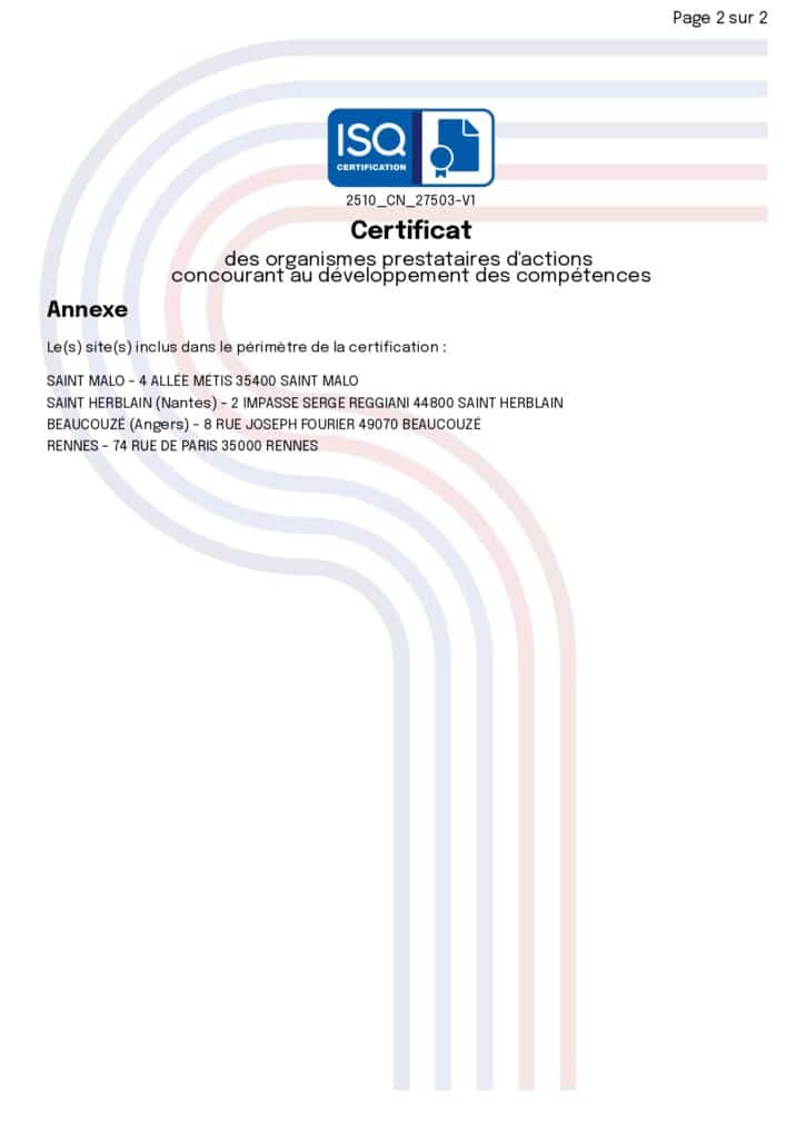 FORMATIVES IGC est titulaire de la certification Qualiopi, selon les exigences de la certification visées à l’article L.6316-1 du code du travail, pour son processus de réalisation des catégories d’actions de développement des compétences suivantes :